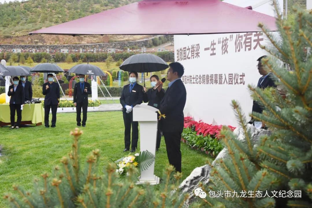 揭幕儀式由中核北方總工程師俞東寶主持。中核北方紀(jì)委書記王國清介紹李冠興院士生平。中核集團公司黨組成員、副總經(jīng)理馬文軍,包頭市委副書記、政法委書記王征宇,李冠興院士家人共同為紀(jì)念銅像揭幕。